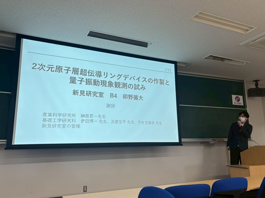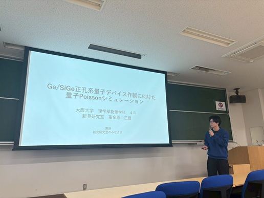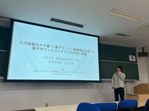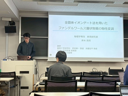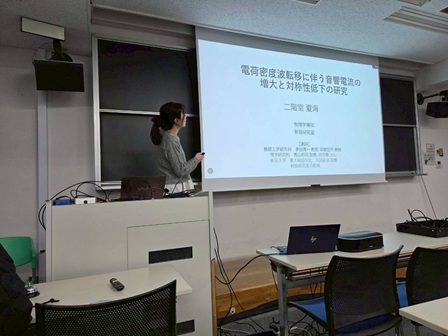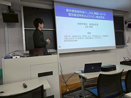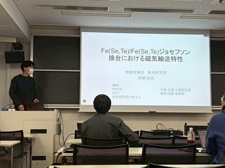 2月上旬から下旬にかけて博士論文公聴会(中村瞭弥さん)、修士論文発表会(小野由喜さん、岸木克将さん、田端佑伍さん、二階堂夏海さん、山田和輝さん)、卒業研究発表会(卯野循大さん、田村聡規さん、塚田景太さん、冨金原正麿さん)が行われました。発表した皆さん、お疲れ様でした!!どれも素晴らしい成果、発表でした。田村聡規さんは卒業研究優秀発表賞を受賞されました!!おめでとうございます!!